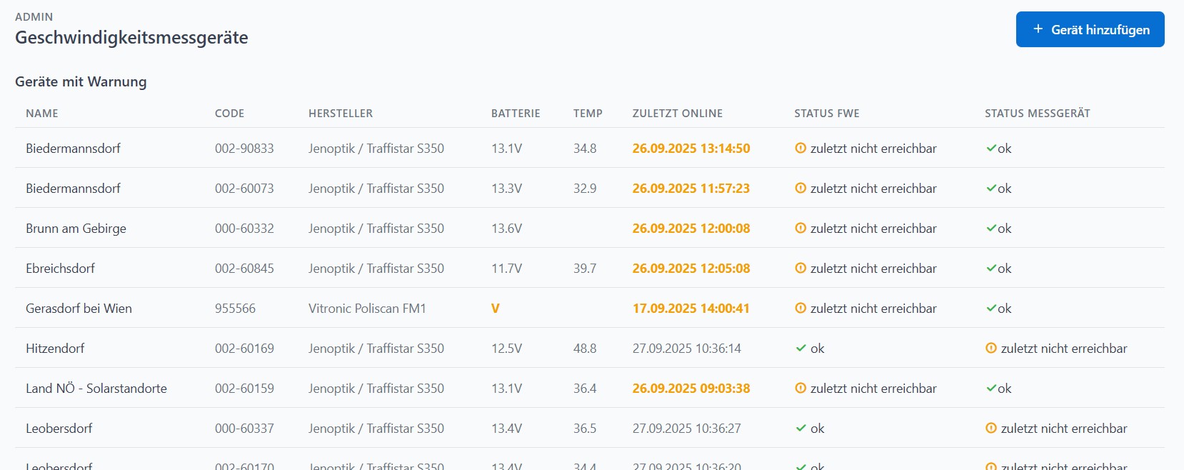 Mit Radarmanager wird die Verwaltung Ihrer Geschwindigkeitsmessgeräte und Seitenmessgeräte zum Kinderspiel.